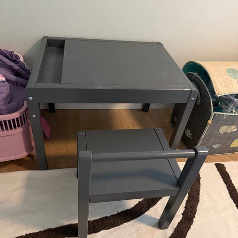 Min dotter säljer nu sina fina barnmöbler i mycket gott skick. Ett charmigt bord med höjden 50 cm och en matchande stol med sitthöjd på 30 cm – perfekta för pyssel, lek och kreativa stunder. Stabilt, välskött och redo för ett nytt hem där det får fortsätta användas och uppskattas.