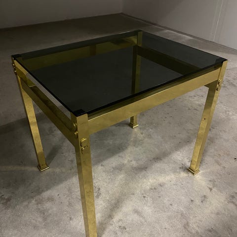 Snyggt och välbevarat sidobord med skiva i äkta vit marmor och ben i kopparfärgad metall.