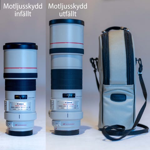 Motljusskydd och fodral ingår.