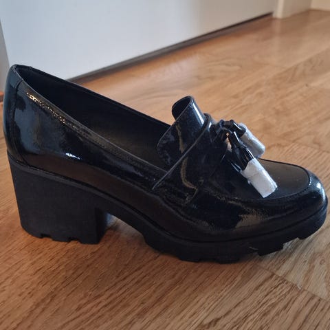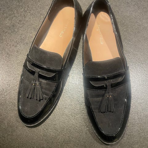 Tamaris loafers för dam i storlek 36. Skorna är i svart mocka med låg sula och rundad tå. Yttersula i syntetmaterial med räfflad undersida för bättre grepp. Passar som vardagssko eller enklare arbetssko inomhus och utomhus.