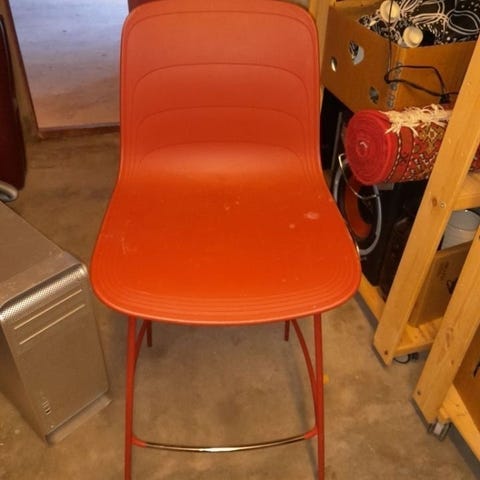Två st barpallar i vitmålat trä med gulgrön sits. Inköpta på Bror Perssons i Alvesta. Priset avser båda pallarna.