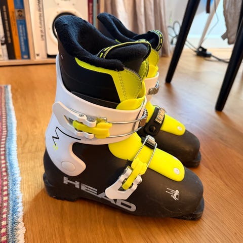 Head alpina pjäxor för junior i färgerna svart och neongul med vita detaljer. Storlek enligt sula: 210–215 mm. Pjäxorna har två justerbara spännen i metall för att kunna anpassa passformen över fot och skaft. Yttersulan är mönstrad för bättre grepp vid gång. Lämpliga för alpinskidåkning för barn/juniorer som använder denna längd på pjäxsula.