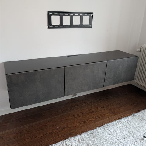 Bestå TV-bänk i mörkgrå. Nypris 3 145 kr.