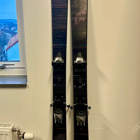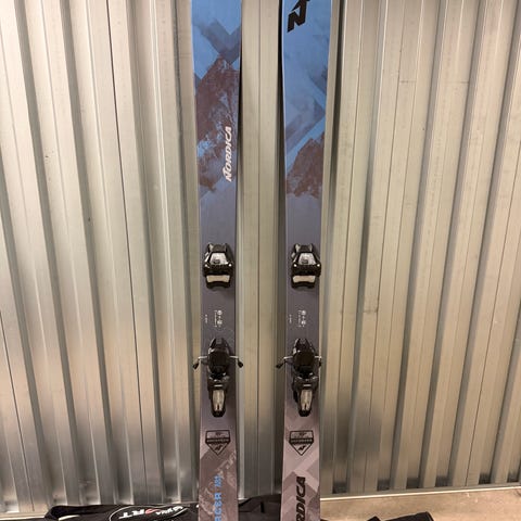 Nordica Enforcer 89 skidor i längd 179 cm. Skidorna har midjemått 89 mm med måtten 122,5–89–110,5 mm och en svängradie på 17,5 m. Färgkombination i svart och blått med Tyrol Attack-bindningar. Lämpliga som allmountain-skidor för pist och varierad åkning.