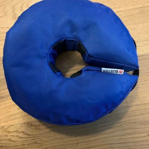 Trixie uppblåsbar skyddskrage för hund. Halskragen är blå och har en justerbar rem. Storlek 20–24 cm i halsomfång. Produkten används som skyddskrage efter operation eller vid hudirritationer för att begränsa hundens möjlighet att slicka eller bita på utsatta områden. Uppblåsbar modell som ger hunden möjlighet att röra sig mer fritt än med en traditionell plastkrage, samtidigt som synfält och möjlighet att äta och dricka bibehålls. Hämtas