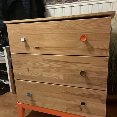 Ikea Malm byrå i bra skick bortskänkes. En liten skada, se bild.