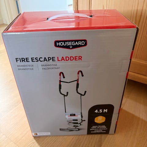 Housegard brandstege för utrymning genom fönster vid brand eller annan nödsituation. Aldrig använd, ligger fortfarande i orginalkartong/plast.