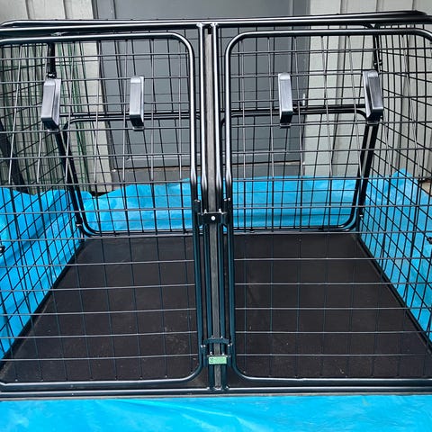 Robust dubbelbur i fint skick. Sitter i en Saab95 men passar säkert andra bilmärken.