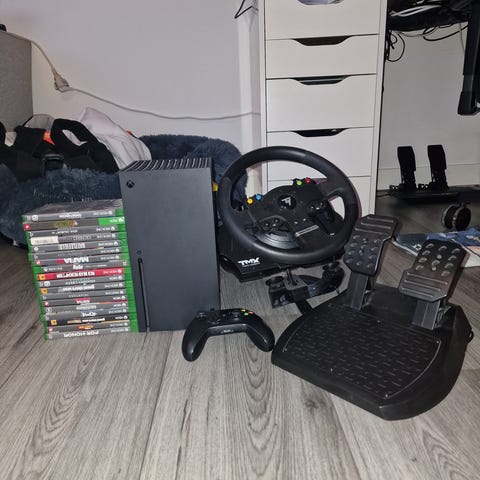 Xbox Series X i gott skick. Nästan ny kontroll. Väl använda hörlurar, men funkar väldigt bra. 29st spel, se bild för titlar. Hämtas gärna I Kristianstad.