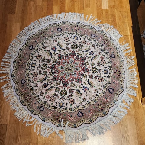 Jättefin Orientalisk rund ”persisk” stor matta grön mönstrad