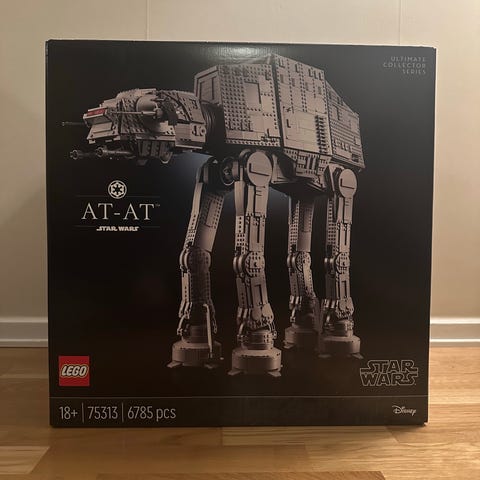Lego Star Wars AT-AT med originalförpackning, originalbeskrivning och alla delar inkl alla gubbar. Ihopbyggd en gång. Som ny. Nypris - ca 2000kr men svår att få tag i.