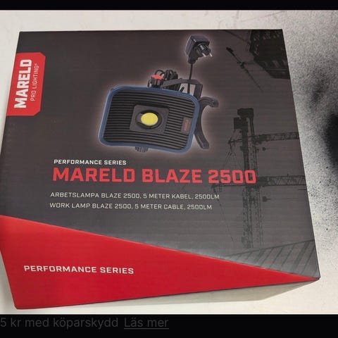 Mareld Shine 3000 RE arbetslampa. Portabel arbetsbelysning med upp till 3000 lumen. Lämplig för användning vid bygg- och renoveringsarbeten eller i garage och andra arbetsmiljöer där extra belysning behövs.