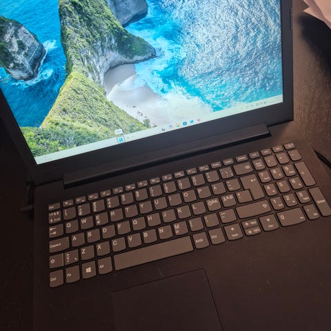 Lenovo laptop i svart utförande. Bärbar dator med fullstort tangentbord och pekplatta. Skärm i standardstorlek för vardagligt bruk som surf, kontorsarbete eller studier. Yttre chassi i mörk färg med Lenovo-logotyp på locket..ntel® Core™ i5-13420H