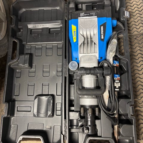 Cotech mutterdragare med elkabel i plastväska. Verktyget levereras tillsammans med flera hylsor som syns på bilderna. Passar för åtdragning och lossning av muttrar och bultar, till exempel vid arbete med bilhjul och andra montage där mutterdragare behövs.