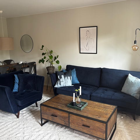 Soffgrupp 3-sits 2-sits och fåtölj sammet mörkblå