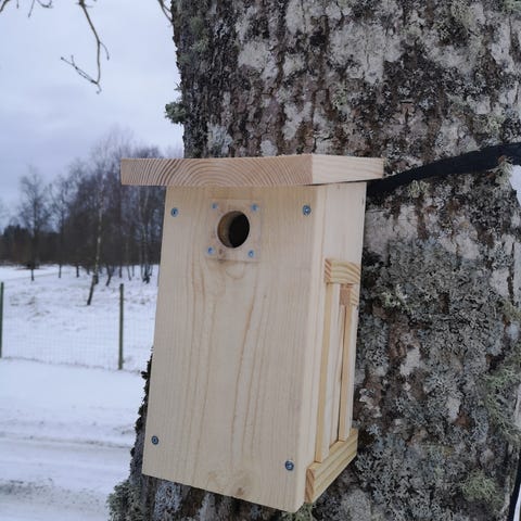 En robust fågelholk som ger ett bra skydd mot hackspett och katt
