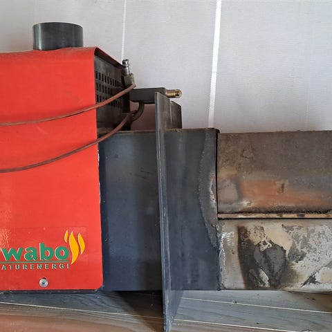 Viking Bio 200 pelletbrännare med inbyggd display. Enheten är avsedd för förbränning av pellets i anslutning till panna eller liknande värmesystem. Höljet är svart med frontpanel i ljus färg och integrerad skärm för inställningar och övervakning. Brännaren har anslutningsrör för montering mot eldstad eller panna samt elkabel för strömförsörjning. Lämplig för användning i pelletseldat värmesystem i bostad eller mindre fastighet där pellets används som bränsle.