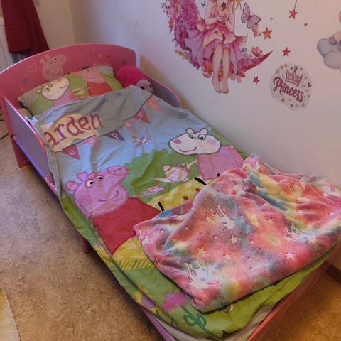 Nypris 2199kr för endast sängen. Dubbla madrasser, dubbla madrasskydd och sex stycken passande sängkläder i olika färger ingår. Grova mått 140x70cm, tydligare beskrivning enligt nedan: