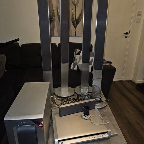 Sony BDV-E380 hemmabiosystem i svart utförande. Systemet består av en Blu-ray Disc/DVD-receiver (modell HBD-E380), en subwoofer, fyra fristående högtalare, en centerhögtalare samt fjärrkontroll och kablar enligt bild. Receiveren har Blu-ray- och DVD-uppspelning samt USB-anslutning på framsidan. Systemet är avsett för hemmabioanvändning med flerkanalsljud i vardagsrum eller liknande miljö.