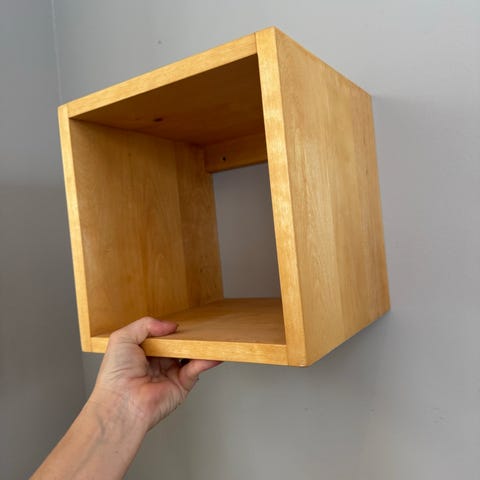 3 stycken separata trähyllor som monteras i vägg. Kan monteras ihop eller var för sig.