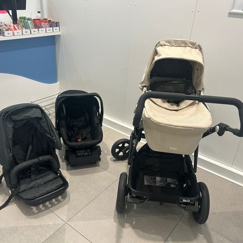Kinderkraft barnvagn i set med liggdel, sittdel och babyskydd i matchande grått tyg. Liggdel med sufflett och bärhandtag, anpassad för spädbarn. Sittdel med justerbart ryggstöd, fempunktssele och avtagbar bygel i läderimitation. Babyskydd med bärhandtag, internsele och vadderad insida. Vagnen har chassi med fyra hjul och varukorg undertill. Passar för transport av barn från nyfödd ålder upp till sittvagnsålder, samt för bilresor med babyskyddet där detta är godkänt att använda enligt märkning på produkten.