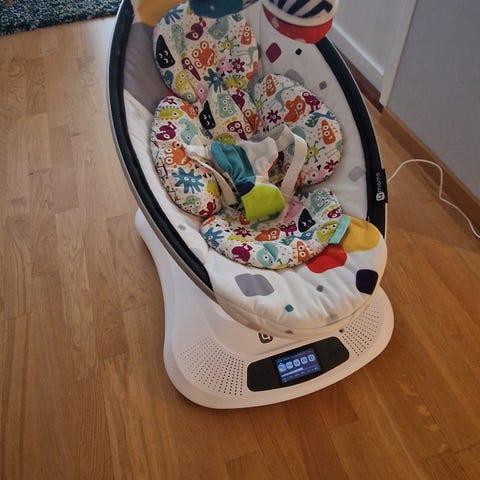 Säljer vår 4moms mamaRoo babysitter. Använd till ett barn, mycket sparsamt och väl omhändertagen. Allt fungerar perfekt.