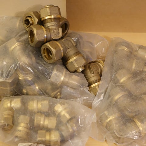 40 st vinkel klämkopplingar / utv. gänga 22 - 3/4"
