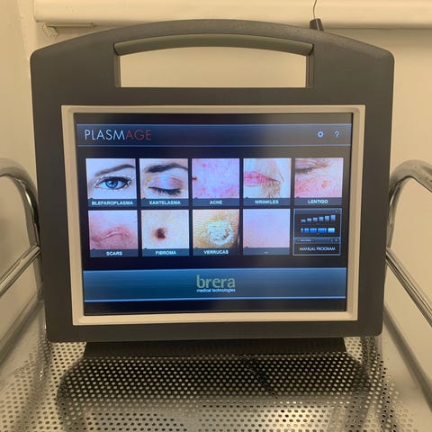 Mantis MR Compact e behandlingsmaskin med integrerad pekskärm. Maskinen har flera förinställda behandlingsprogram som visas på skärmen och kan styras via menyval. Utrustad med nödstoppknapp och nyckellås på frontpanelen. Språkval på skärmen inkluderar bland annat engelska, spanska, italienska, tyska, ryska och polska. Avsedd för professionellt bruk inom kropp- och hudbehandlingar enligt tillverkarens anvisningar.