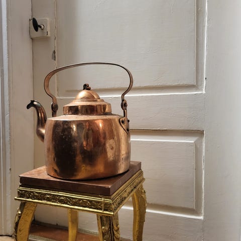 Brandposten brandsläckare i mässing med cylindrisk behållare och fast monterad slang. Modellen har bärhandtag upptill och ventil för manövrering. Passar som samlarobjekt eller inredningsdetalj med industriell karaktär. Exakt kapacitet och tillverkningsår är okänt.