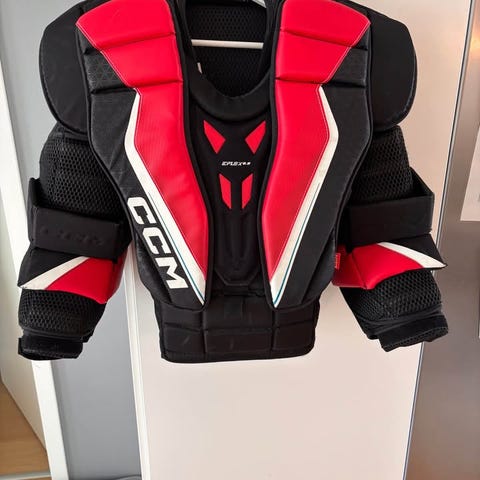 Bauer Elite axelskydd för ishockey i storlek INT Large. Färg främst svart med blå insida. Skyddet har vadderade axel-, bröst- och ryggpaneler samt justerbara remmar för passform. Avsett för användning inom ishockey eller liknande skatingsport där överkroppsskydd behövs.