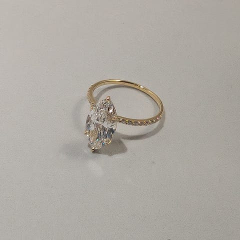 • 23 st små briljanter i halo, totalt 0.19 ct (E–G, VS1–VS2)