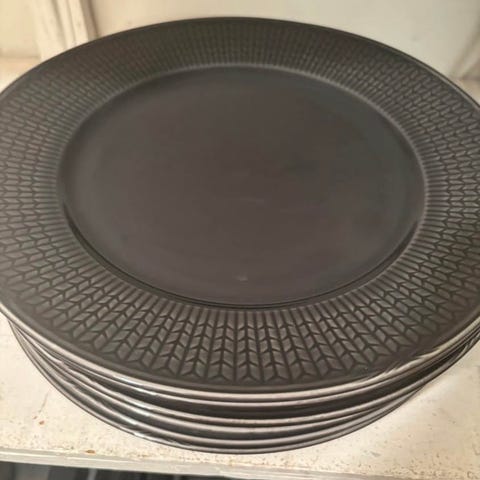 14 st mattallrikar Swedish Grace svarta 27 cm, använda och i bra begagnat skick med synliga märken efter användning.
