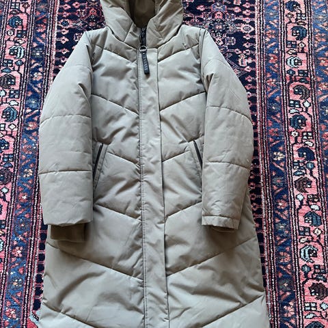 Everest lång jacka för dam i storlek XS. Jackan är grön och tillverkad i polyester. Modellen är quiltad med huva och hel dragkedja framtill. Flera framfickor med lock och dragkedja ger plats för förvaring. Längre modell som täcker ned över låren och passar som ytterplagg under kallare väder.
