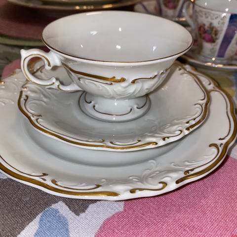 Bavaria kaffeservis från 80-talet eller tidigare. Det finns 12 koppar med fat och 10 assietter. Dekor med blommönster och guldfärgade kanter. Servisen hämtas på plats av köparen, skickas ej!