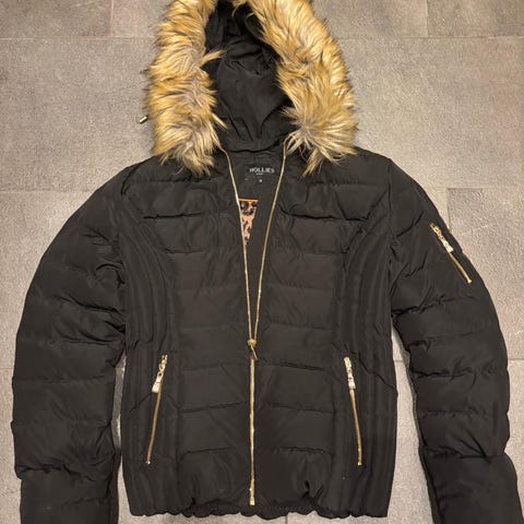 Snygg och varm vinterjacka - storlek 146! Jackan är svart och har vadderad design med huva som har fuskpäls. Dragkedja framtill och fickor med dragkedja. Reflexer finns bak på jackan för ökad synlighet.Helt ny!