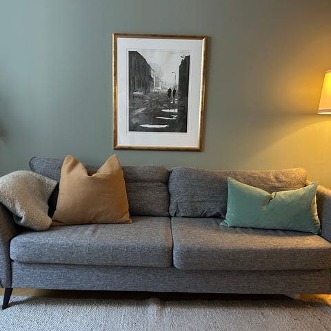 Mio soffa i ljus textilklädsel.