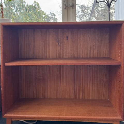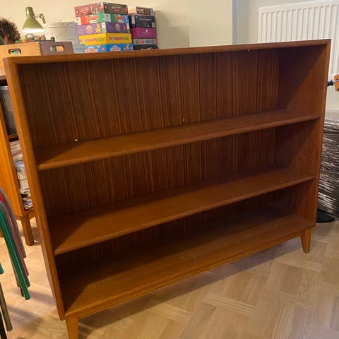 Bokhylla i teak, ”Varia bokhylla”. Flyttbara hyllplan.