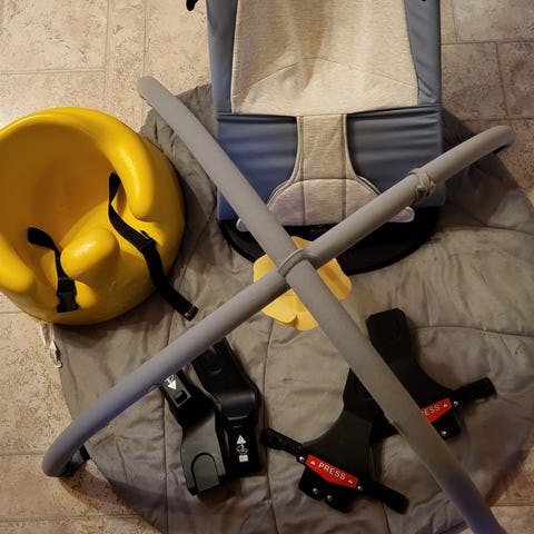 Barnartiklar paket babysitter gåstol filtar pottring spjälsängssida