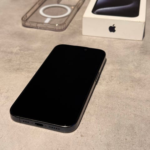 Säljer min iPhone 15 Pro (128 GB) i färgen Black Titanium. Telefonen är i mycket fint skick och fungerar perfekt.