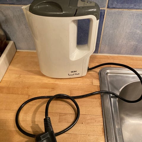 Champion vattenkokare i vit färg med detaljer i metall.