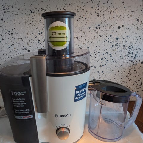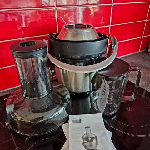 Beskrivning och skick: Säljer en ny kraftfull Philips råsaftcentrifug Detta är en effektiv maskin som kan pressa upp till 2 liter juice åt gången utan att du behöver tömma fruktköttsbehållaren. Tack vare det extra stora matningsröret (75 mm) behöver du inte skära upp de flesta frukter och grönsaker i förväg.