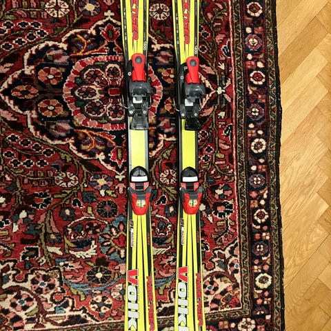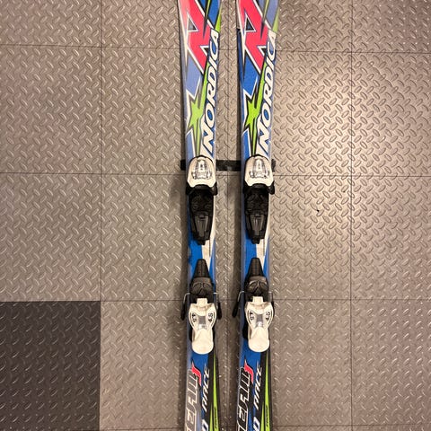 Mycket varsamt använda. Utrustade med integrerade bindningar som är justerbara efter pjäxstorlek. Passar för alpin åkning i pist.