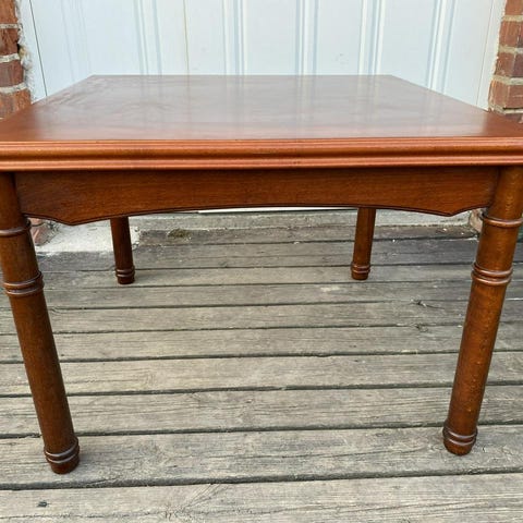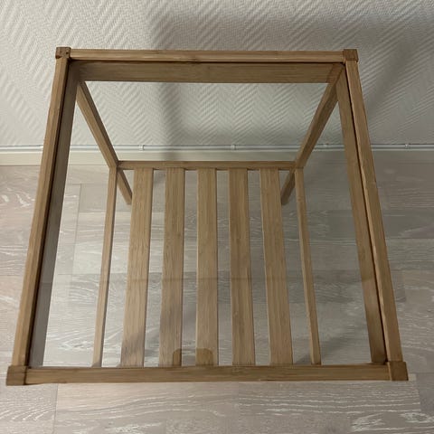 En dekorativ hylla med blomstermönster under bordsskivan.