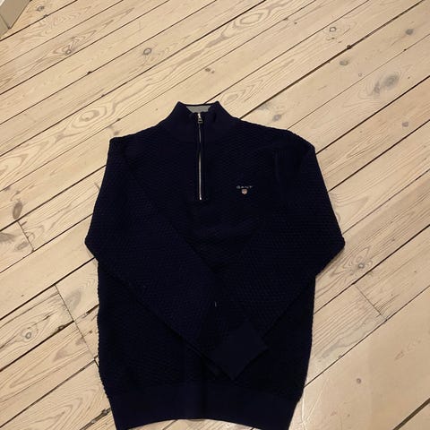 Gant sweatshirt för herr i storlek S. Tröjan är svart och tillverkad i bomull. Modellen har hel dragkedja framtill, hög krage och ribbade muddar vid ärmslut och nederkant. Diskret Gant-logotyp är placerad på bröstet. Passar som vardagströja eller som ett extra lager vid svalare väder.
