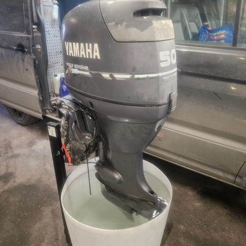 Har bytt microswitch och dödmansgrepp i reglaget, tändstift samt bränslepump. Bränslepumpen inköpt för 1300 kr i år från Yamaha Center original. Förgasaren är rengjord av båtmekaniker. Kompprov var bra på alla cylindrarna när jag köpte motorn för 3-4 år sedan.