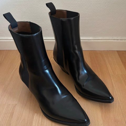 Säljer ett par Eytys boots i svart, helt oanvända, med kraftfull silhuett och tydlig, arkitektonisk design.