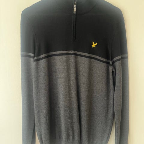 6: Lyle and Scott crew neck. Navyblå. Tvättad två gånger kanske. Medium normal size. 250kr.