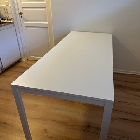 Vitt skrivbord från IKEA, cirka 3 år gammalt. Stabilt och funktionellt, passar bra som skrivbord eller arbetsbord.