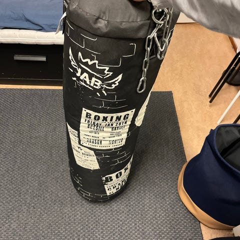 Stående boxningssäck i fint använt skick. Bra för att kombinera sparkar, slag och nedtagningar och markamp. Botten är avtagbar och kan användas till styrketräning.