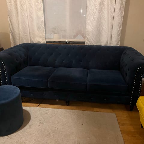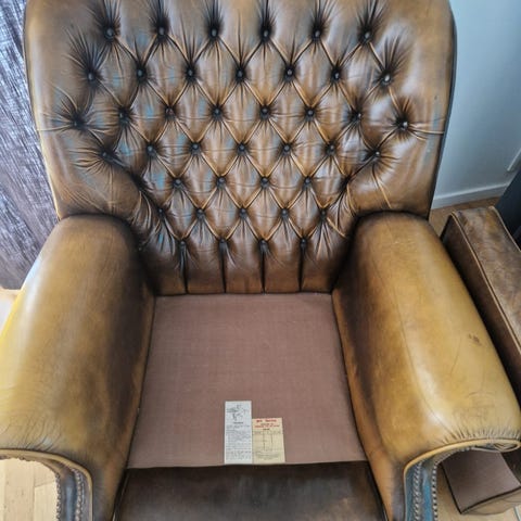 Stilfull lädersoffa i klassisk Chesterfield stil.